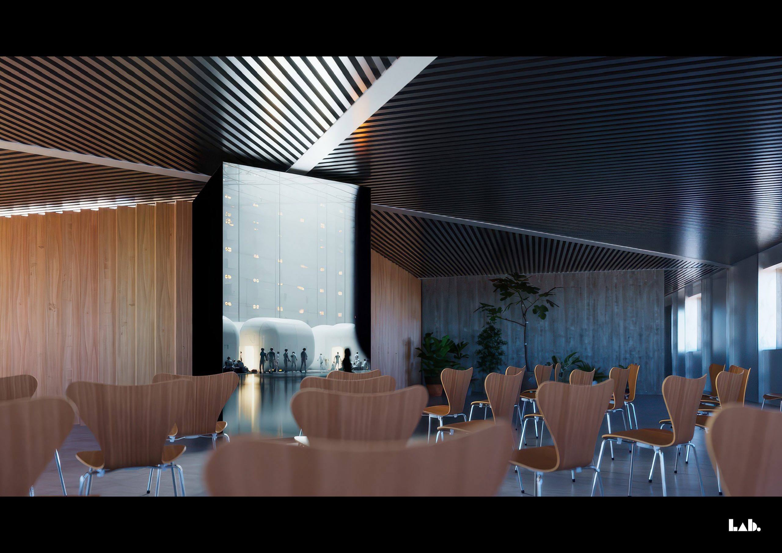 The space introduces coexisting human activities, using the "black box" and the "glass box" as carriers for human spaces, accommodating diverse functions such as offices, exhibition halls, and multi-purpose rooms.